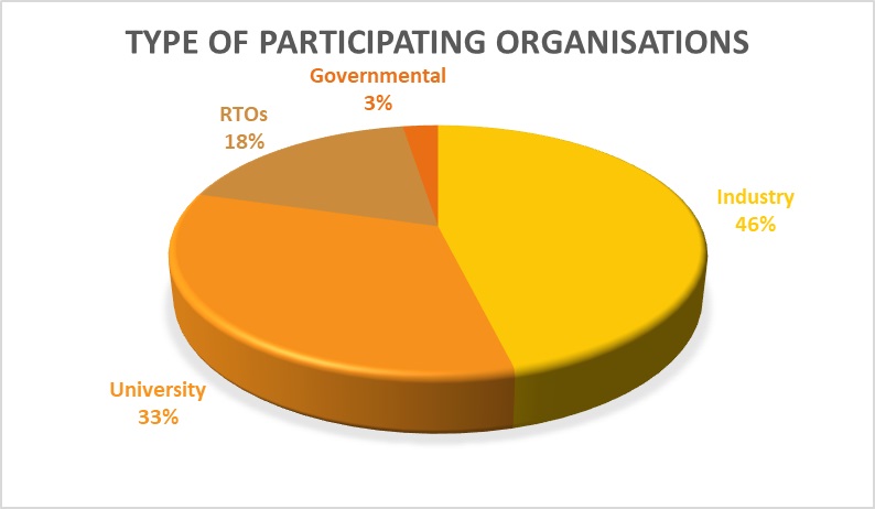 This Workshop 40 people registered to participate, from which 14 belong to external organisations. The majority of participating organisations belong to industry.